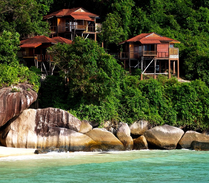 До гостиницы Japamala Resort не так-то просто добраться: она находится на острове Тиоман, так что доехать можно только на катере. Но это того стоит: шикарные виды на Южно-Китайское море, гидромассажная ванна прямо на свежем воздухе и полное единение с природой.