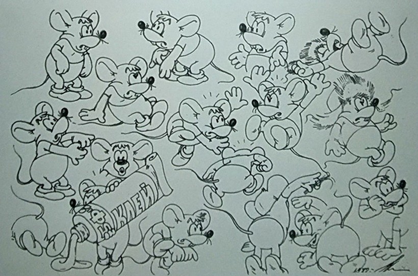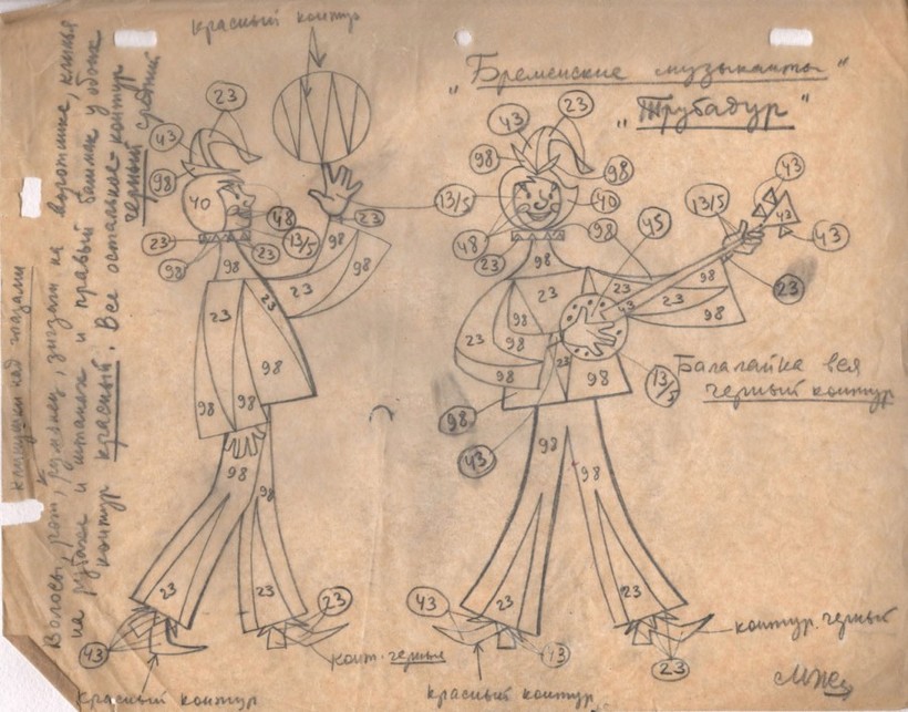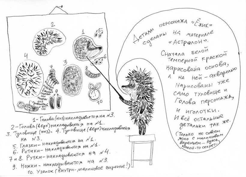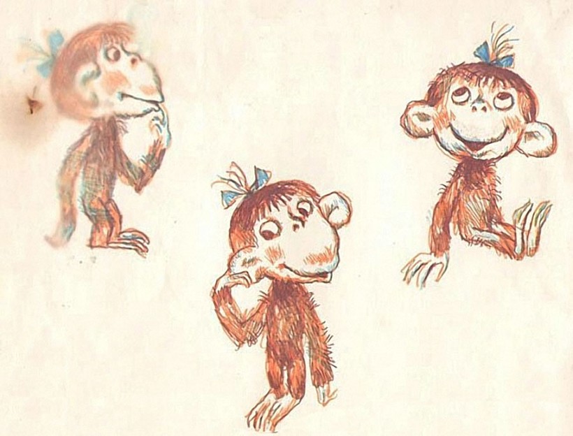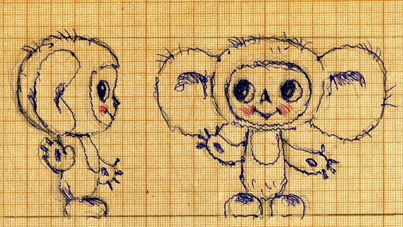 Начал я рисовать Чебурашке уши: сначала наверху, потом они постепенно стали сползать и увеличиваться. Ко мне регулярно приходил Качанов, я показывал наброски, мы их обсуждали, спорили, он выражал свои пожелания, я перерисовывал. Благодаря таким совместным усилиям и возник окончательный эскиз. На нем, правда, у Чебурашки еще есть медвежий хвостик, который потом сильно уменьшили. И ножки поначалу были подлиннее, но Норштейн посоветовал сделать их маленькими, как сейчас. После создания эскиза в цвете я сделал чертеж, а мастера-кукольники изготовили Чебурашку, и он зажил своей жизнью».