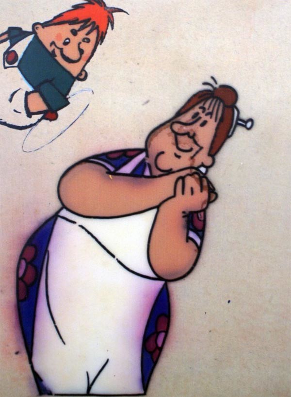 С Шапокляк тоже все вышло просто. Шапокляк — это, как известно, название складного цилиндра. Это XIX век, и отсюда пошло все остальное: черное строгое платье, жабо, белые кружевные манжеты, туфельки-лодочки на каблучках. Поскольку она — шкодливая такая бабка, Шварцман сделал ей длинный нос, розовенькие щечки и выдающийся подбородок. А седые волосы и пучок позаимствовал у своей тещи.