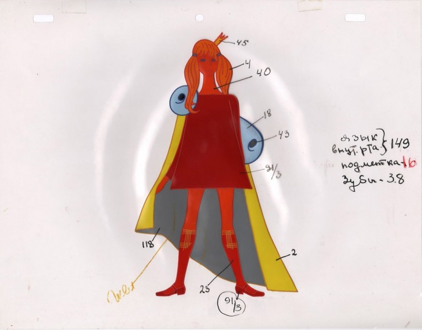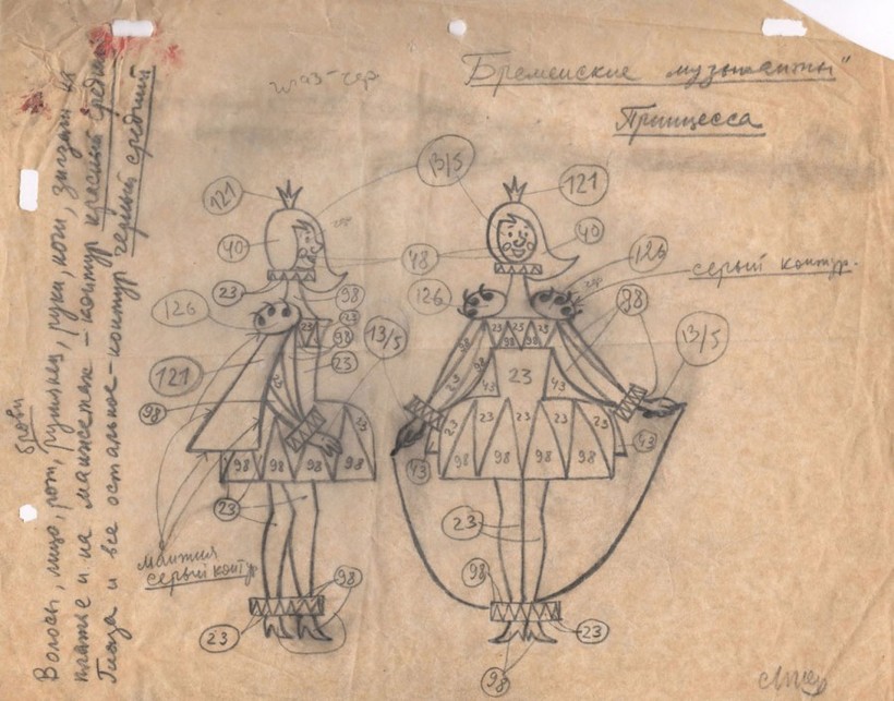 В черновом варианте все герои мультфильма выглядели более чем прилично. Принцесса в пышных кружевах, Трубадур в шутовском колпаке, вычурные дворцовые палаты. Но это не устраивало режиссера. По ее мнению, они были совершенно не созвучны ни музыке, ни жанру фильма. Члены художественного совета были также удивительно единодушны во мнении, что данные персонажи не соответствуют сценарию, а особенно музыке.