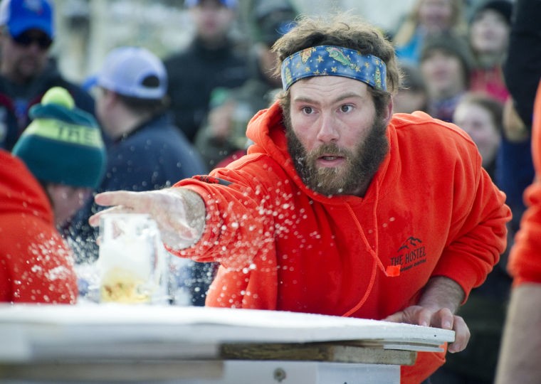 В 1986-м военно-воздушные силы Джексон-Хоула, секретный лыжный клуб в Вайоминге был в погодной ловушке – они пережидали снежную бурю, и судьба завела их в бар, где те придумали столь популярную игру, ставшую ныне спортивным мероприятием. Ее смысл следующий – один из команды должен подтолкнуть к другому через весь стол кружку пива, тот ее ловит, быстро выпивает, затем они бегом меняются местами и так нон-стоп пока можно стоять на ногах.