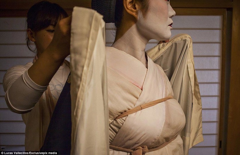 Самостоятельно одеться у гейши не получится, ей обязательно требуется помощь ее учениц — майко.