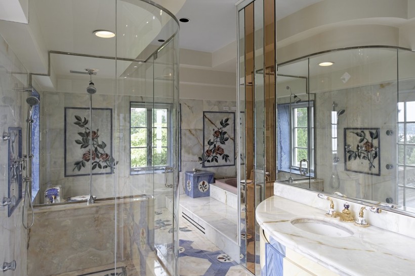 Террасы в доме отделаны ониксом, ляпис-лазурью, агатом и малахитом.