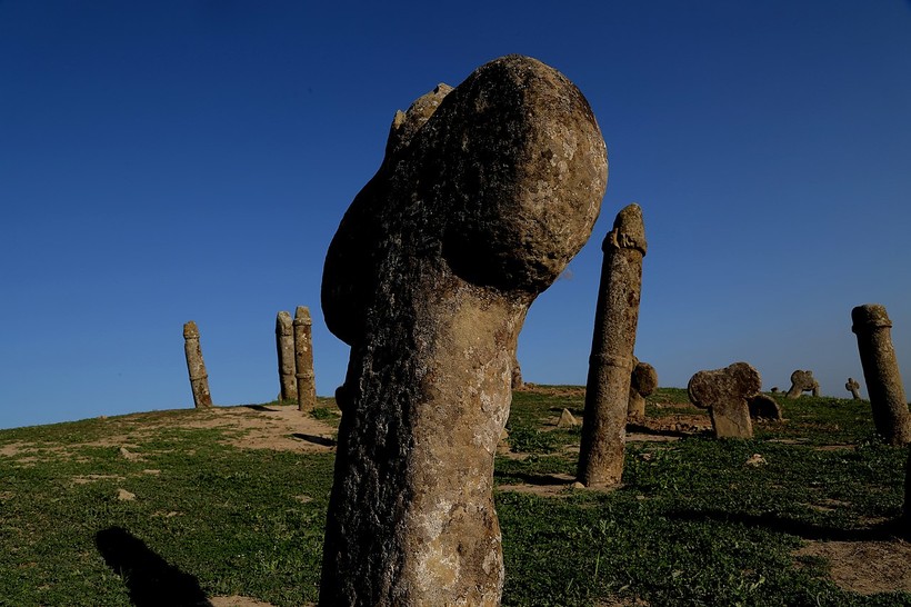 Ученые до сих пор точно не могут сказать, откуда появились такие необычные захоронения, по примерным оценкам им около 1400 лет. Все надгробия похожи друг на друга, отличаются они только размерами. Специалисты предполагают, что под колоннами покоятся мужчины, а под закругленными крестами — женщины. Ну а высота надгробия (а некоторые из них достигают четырех метров), вероятно, указывает на возраст умершего. Вполне возможно, что на странные могильные плиты могла повлиять фаллическая религия, которую практиковали в Индии и Центральной Азии.