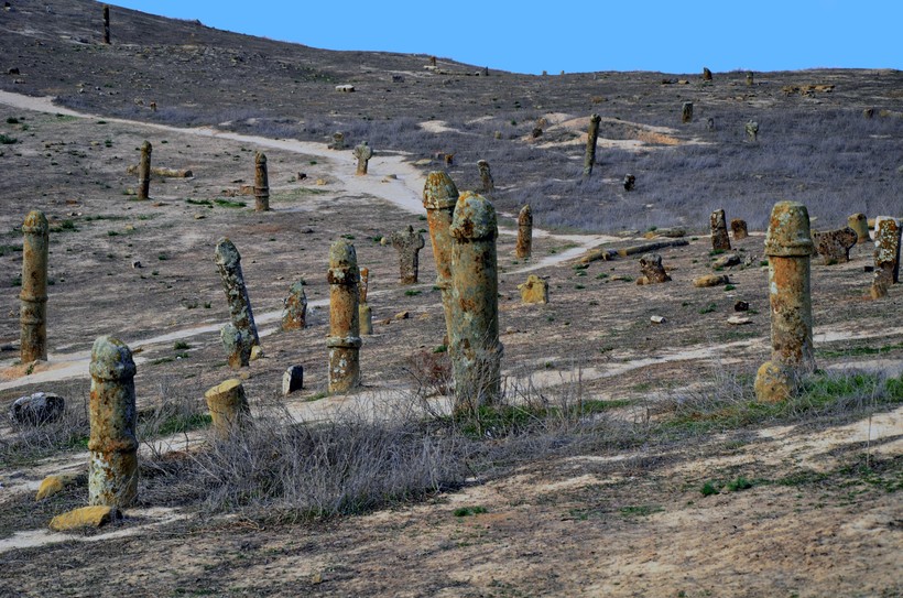 На одном из холмов в Иране, недалеко от границы с Туркменистаном, есть странное кладбище, где в качестве надгробий возвышаются над землей каменные изваяния, очень напоминающие фаллосы и женскую грудь.