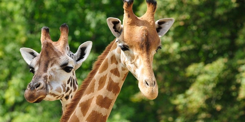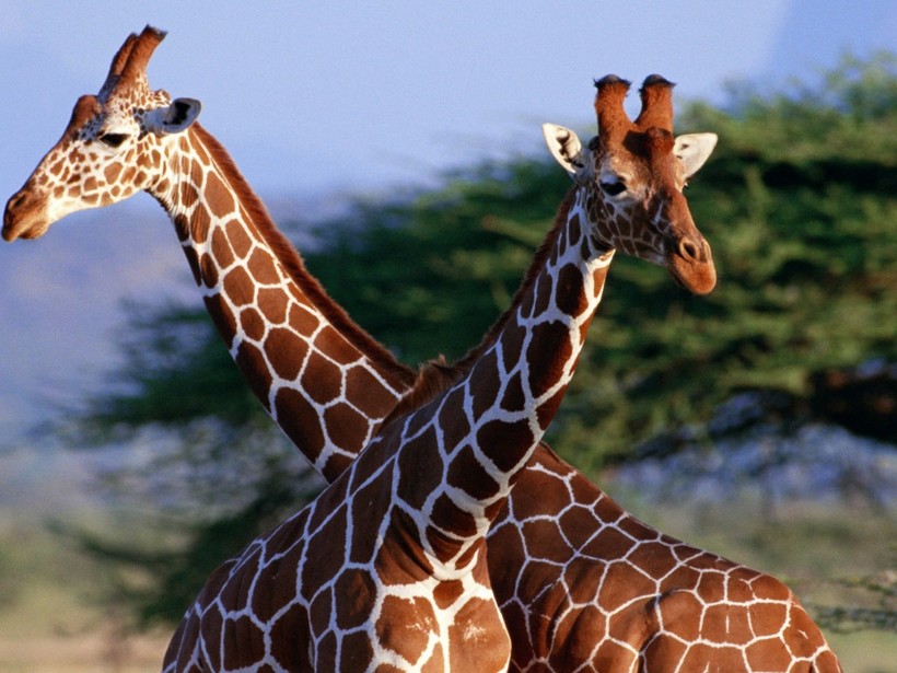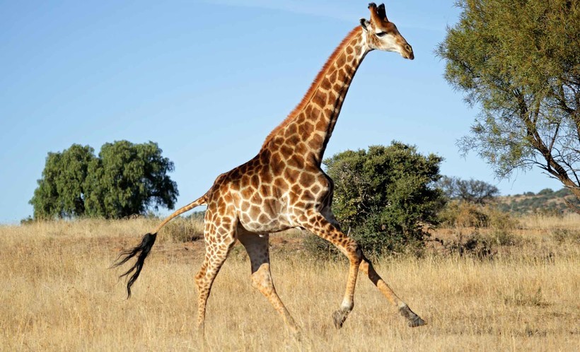 Жираф, а точнее 6 его подвидов, обитает только в Африке. Несмотря на свою кажущуюся неуклюжесть, жирафы отлично бегают и в случае опасности могут развивать скорость до 50 км/час. Как полагают ученые, длинная шея жирафов сформировалась как адаптация к засушливым условиям саванн и ограниченному количеству корма. Благодаря такому высокому положению головы и гибкой шее, жирафы могут не конкурировать с прочими травоядными животными. Великаны саванны всегда имеют достаточно еды, ведь доступ к верхнему ярусу деревьев имеют только они.