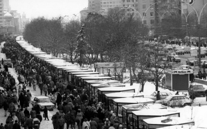 Уличная торговля на проспекте Калинина в Москве в начале 1990-х