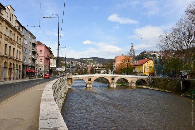2. Мост находится в исторической части Сараево, которую разделяет городская река Миляцка.