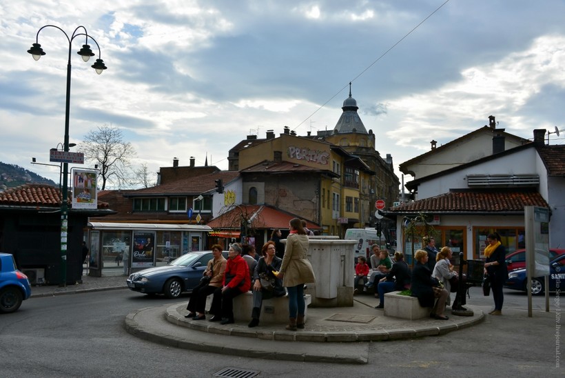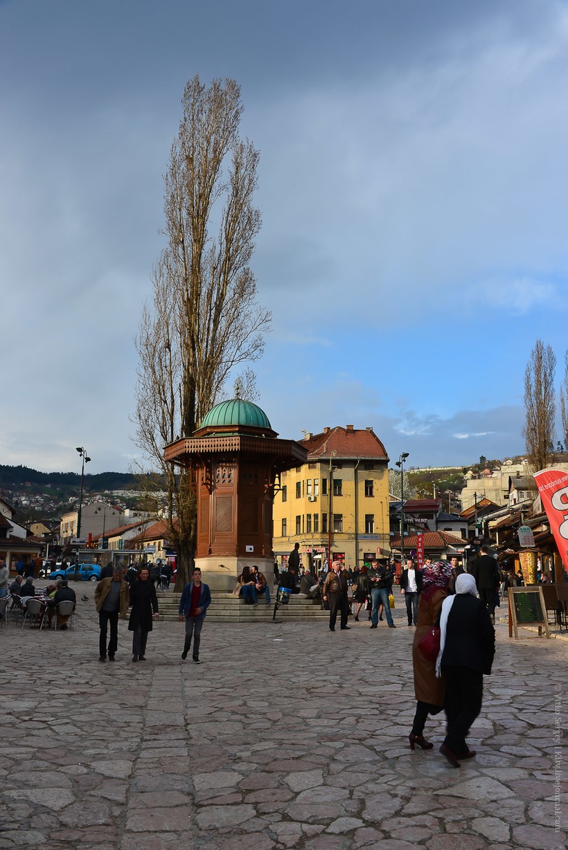 7. Посреди площади расположен построенный в 1753 году символический фонтан Себили Брунен, который часто называют «сердцем Сараево». Мне настоятельно рекомендовали испить из фонтана хоть немного воды, чтобы вернуться. Подумалось, что я и без воды вернусь, при желании... )