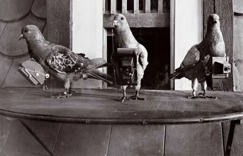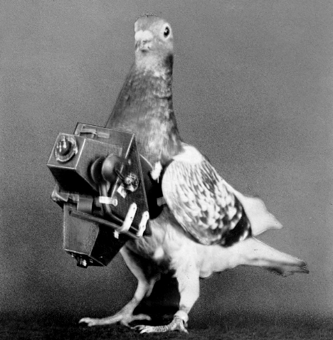 Еще в 1907 году немец Юлиус Нойброннер предложил использовать почтовых голубей в качестве шпионов. На птицу надевали миниатюрную фотокамеру, которая вела фотосъемку в автоматическом режиме. Таким образом, выпущенная со стороны вражеской территории птица, возвращаясь домой, снимала все, что находилось на ее пути. Голуби-шпионы, которых переправляли на вражескую территорию при помощи специально обученных собак, широко применялись немецкой армией во время Первой мировой войны.