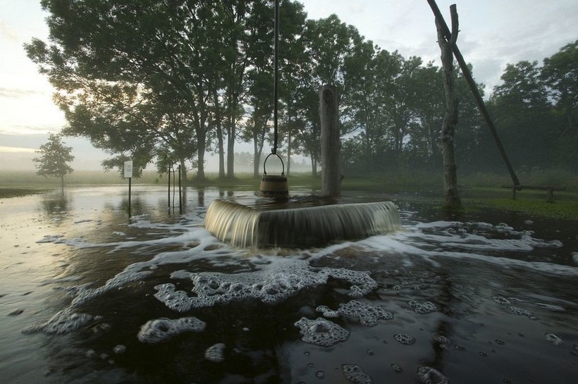 Но если пройдет сильный дождь, то вся территория вокруг колодца превращается вот в такую невероятную магическую картину.