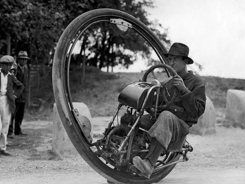 Одноколесный мотоцикл появился в Италии уже в 1931 году и мог разгоняться до 150 км/ч