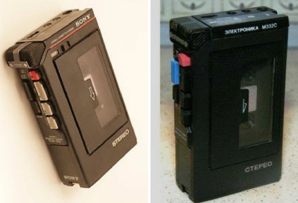 Кассетный магнитофон — SONY TCS-310, 1981 г. и «Электроника М332С», 1987 г.
