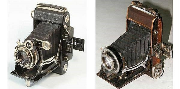 Среднеформатный складной фотоаппарат — Zeiss Ikonta 521/2, 1932 г. и «Москва-1», 1946 г.