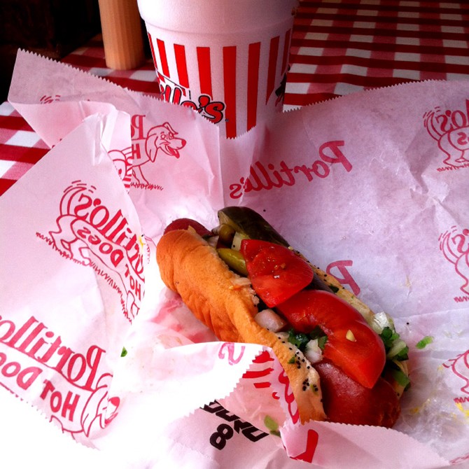А это царь всех хот-догов — Чикагский хот-дог (англ. Chicago-style hot dog), приготовленный в популярном историческом месте Portillo's.