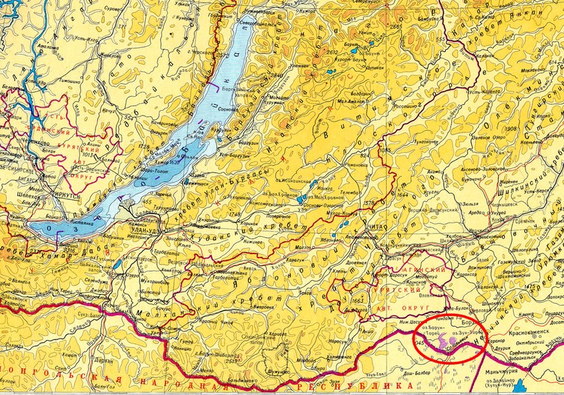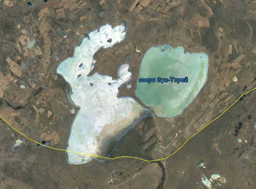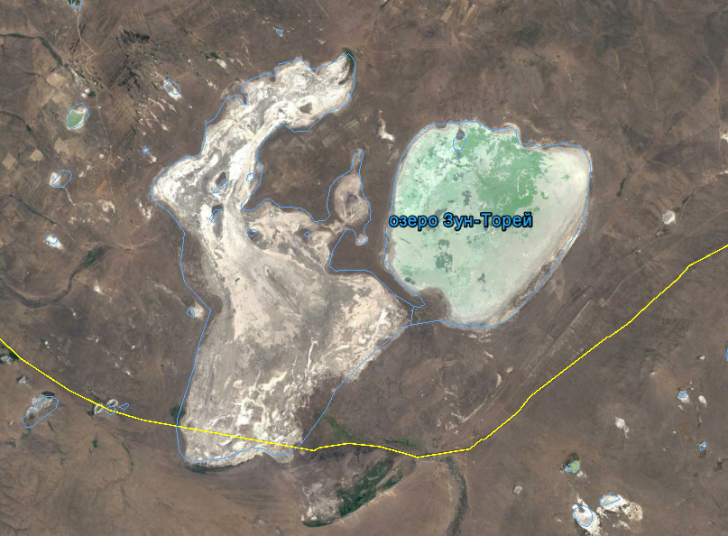 Торейские озера, расположенные на юге Забайкальского края, на самой границе с Монголией. Это два соленых бессточных озера: Барун-Торей (западное озеро) и Зун-Торей (восточное озеро). Барун-Торей в годы максимальных разливов имеет площадь до 580 км. кв., а Зун-Торей достигает 300 км. кв. Во время максимального подъема уровня воды они соединены протокой и представляют собой единый водоем площадью почти 900 км. кв. Для сравнения: площадь озера Ильмень 980 кв.км, а Мертвого моря в Израиле — около 810 км.кв.