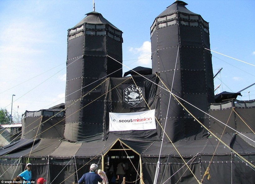 Эта палатка была представлена организацией Black Castle, зарегистрированной ассоциацией скаутов. На самом деле она представляет собой всего лишь один из возможных вариантов комбинации традиционных немецких черных скаутских палаток, но невероятно эффектный вариант!