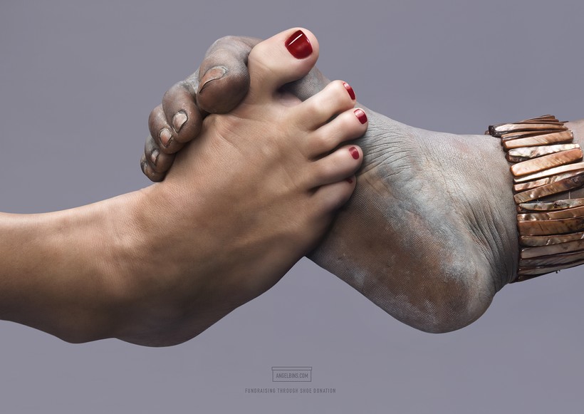 Социальная реклама Angel Bins, призывающая жертвовать обувь.