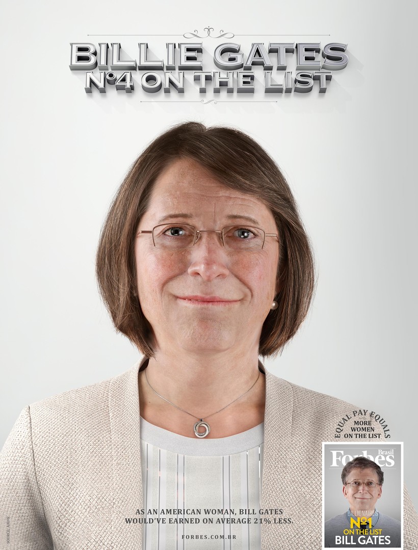 Бразильский журнал Forbes выпустил рекламу, посвященную гендерным различиям в оплате труда. Какие состояния были бы у миллиардеров-женщин?