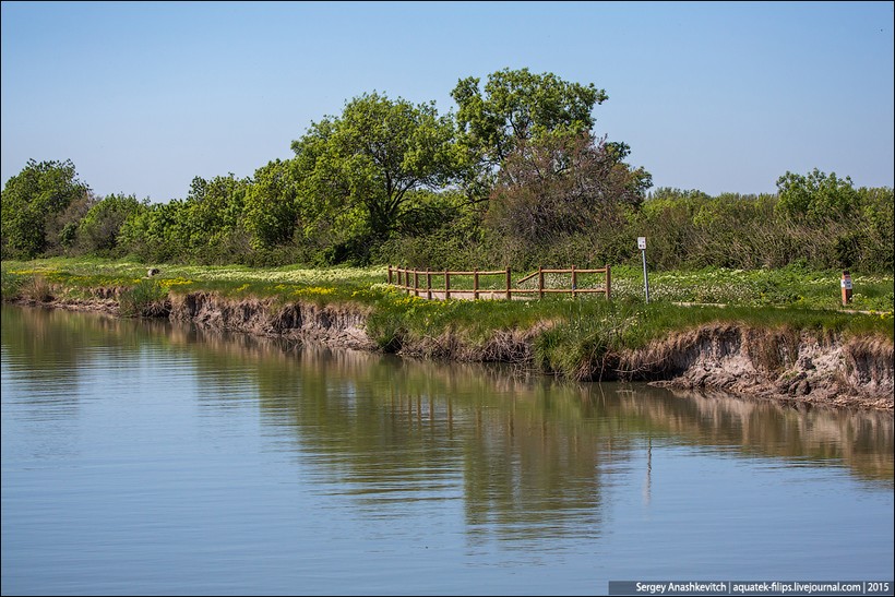 17. В первый день меня удивляло, что в таких нешироких каналах совершенно спокойно ходят катера практически вплотную к берегу. Оказывается, специальные службы следят за каналами — за их глубиной, очисткой дна и берегов. Так, например, специальный трактор удаляет молодые побеги кустарников, которые могут в дальнейшем стать помехой движению катеров.
