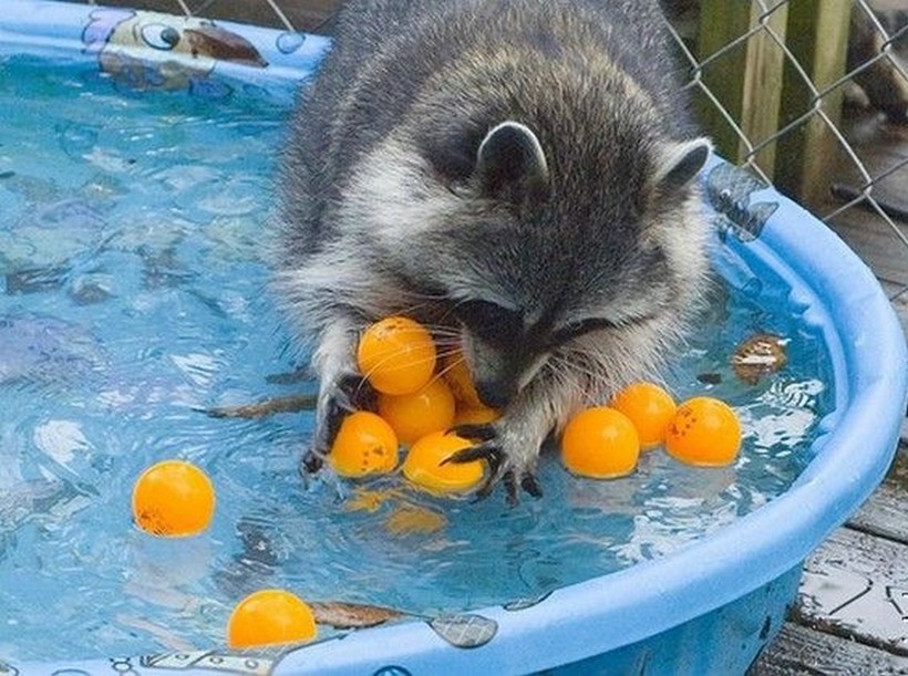 Любовь к водным играм связана с природной особенностью: еноты переворачивают камушки на дне ручья или реки, тем самым пытаясь найти мелких ракообразных или земноводных. Ну а стремление помыть и прополоскать добычу перед едой — это не что иное, как способ умерщвления жертвы. По мнению зоологов, енот «моет» добычу в воде до тех пор, пока она не перестанет подавать признаки жизни. То есть привычка полоскать никак не связана с любовью к излишней чистое, а является врожденным рефлексом, связанным с добычей пищи.