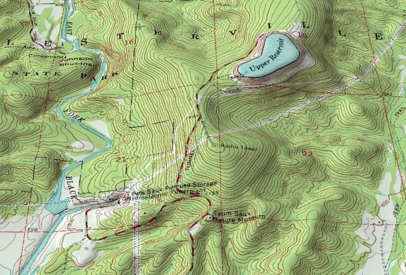 Резервуары гидроаккумулирующих электростанций, как правило, сооружают на существующих водных объектах, реках или озерах. Но Таум Саук в этом плане является исключением, ведь ее верхний резервуар был сооружен с нуля, и все его стены, высота которых составляет 30 метров, являются инженерным творением человека. Строительство ГАЭС Таум Саук велось в течение трех лет и завершилось в 1963 году. На данный момент мощность электростанции составляет 450 МВт.