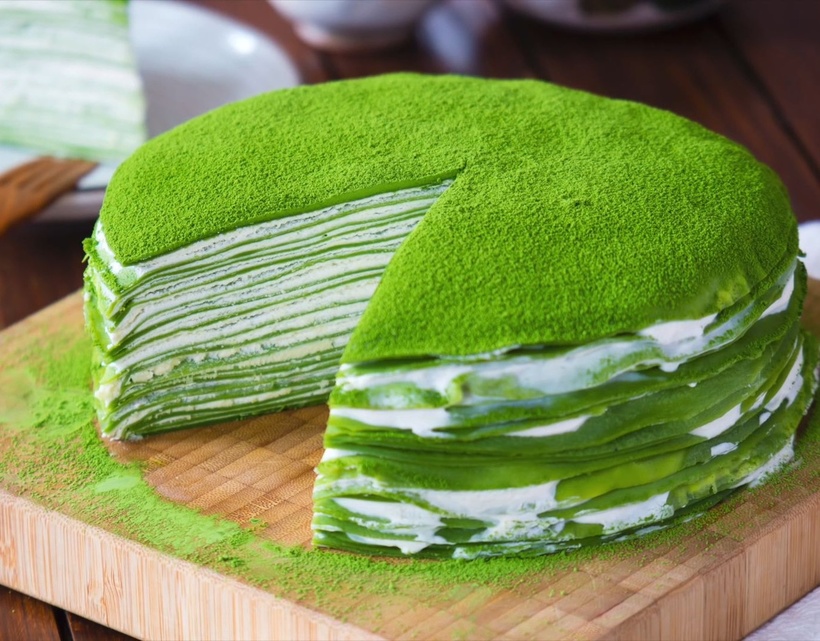 Торт из блинов с добавлением чая маття и взбитых сливок — Китай