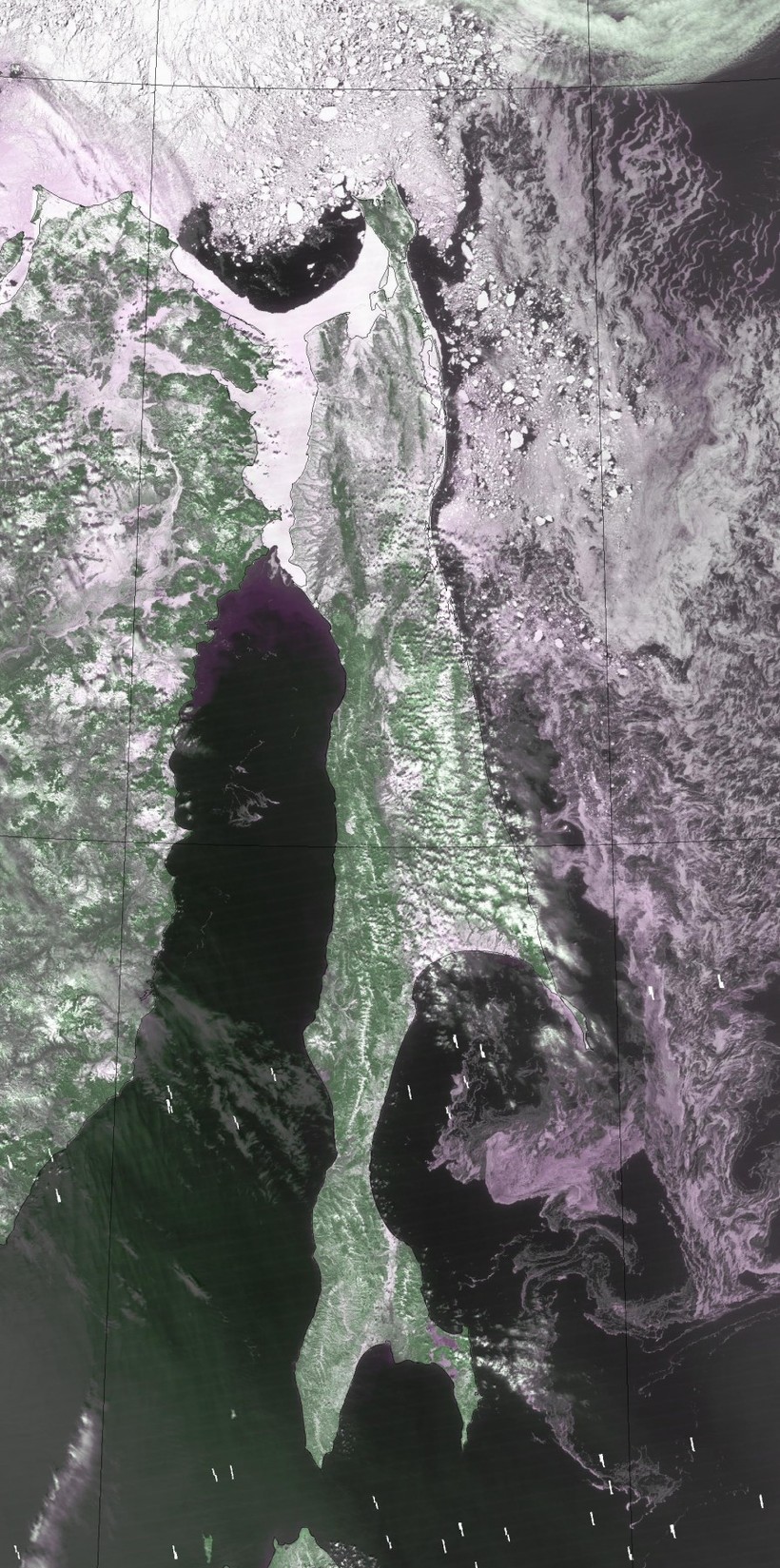 А так выглядит остров Сахалин зимой, когда Татарский пролив полностью замерзает.