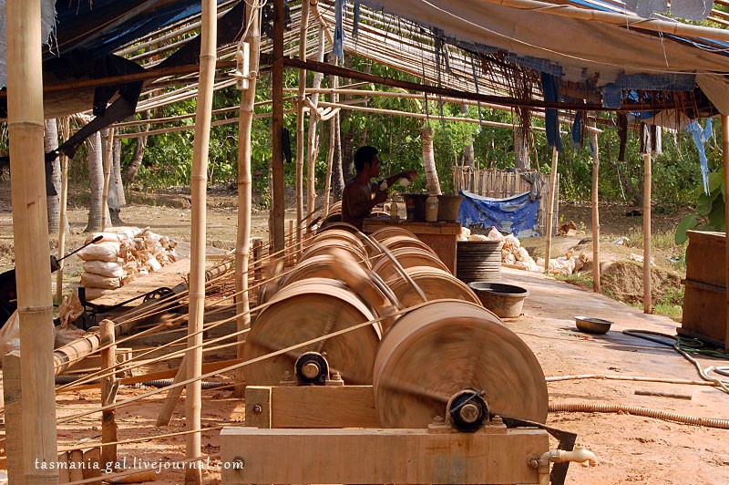 Процесс лишь выглядит несложным. Принесли с холма мешок камней, раздробили их, пересыпали в барабан (бегунную чашу), воды добавили, два-три тяжелых металлических раздробителя, генератор включили, и пусть электричество тяжелую работу делает.