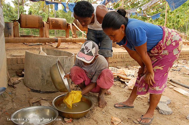 — Я когда девчонкой была, в хороший год у нас пять-десять млн рупий в год было. На семью из двух взрослых и десяти детей, — рассказала Ибу Саруни, жена старателя Пака Садина. — Если год неудачный, то пятьсот тыс. рупий всего.