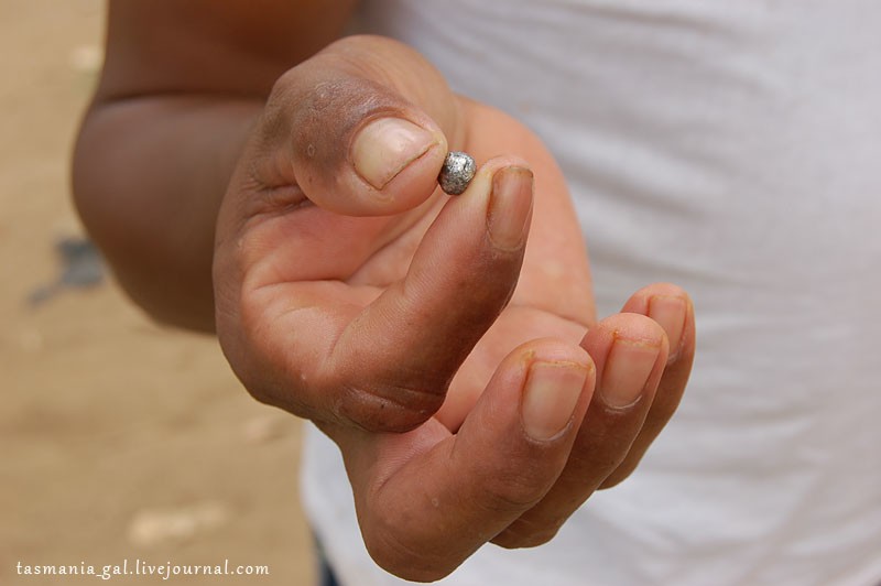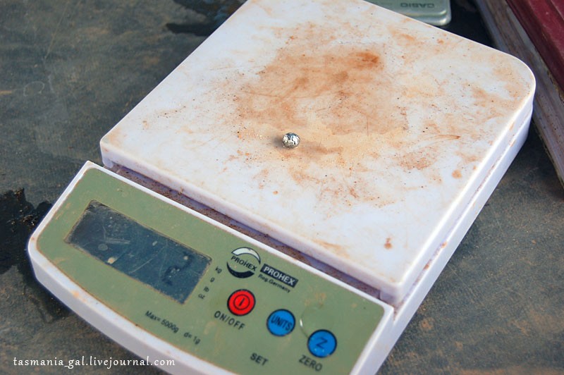 Если повезет, на ткани останется один или несколько комочков грязно-серого цвета — смесь ртути с золотом или серебром. Из них формируют плотный шарик и взвешивают.