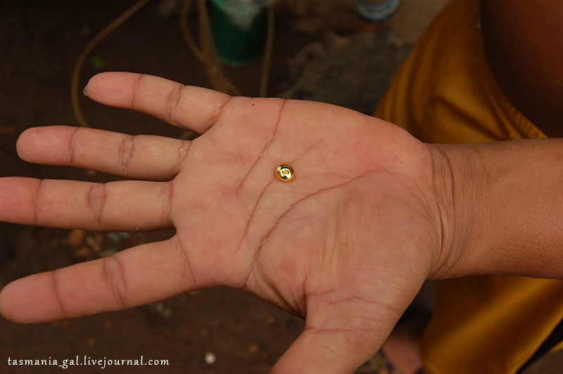 Выпарили ртуть — получили настоящий результат. В виде золота, смеси золота и серебра или серебра. И можно к скупщикам нести. За грамм золота можно выручить до трехсот пятидесяти тыс. рупий.