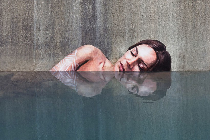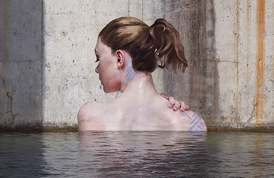 Художник родом с Гавайев Шон Йоро создал серию ошеломляющих стрит-арт фресок на бетонных стенах разрушенных и заброшенных сооружений. На них изображены женщины, которые выходят из воды. Парень использует доску для серфинга, чтобы добраться до намеченных мест для размещения своих шедевров, и умудряется балансировать на этой доске с канистрами красок.
