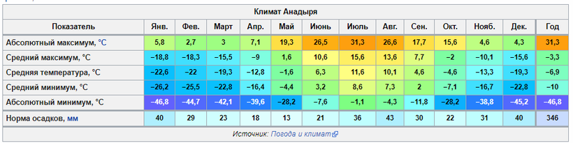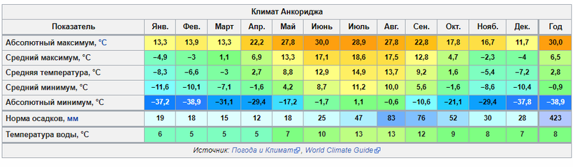Теперь, когда нам стало ясно, что климат и природные условия в этих двух регионах значительно отличаются, можно поговорить о численности населения. Население Анкориджа составляет 290 000 человек, а Анадыря чуть менее 15 000 человек. Опять же приведем для сравнения климатические показатели двух городов, они существенно отличаются.