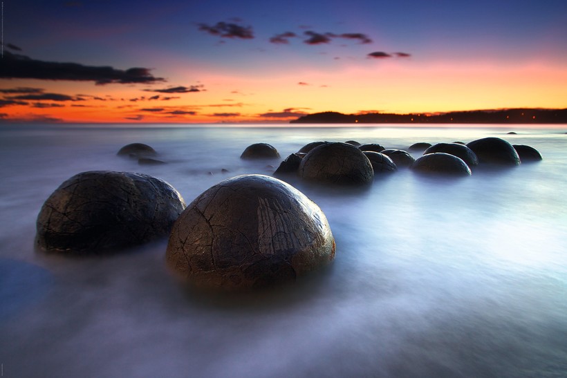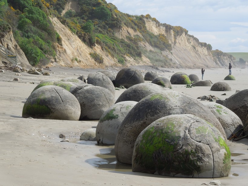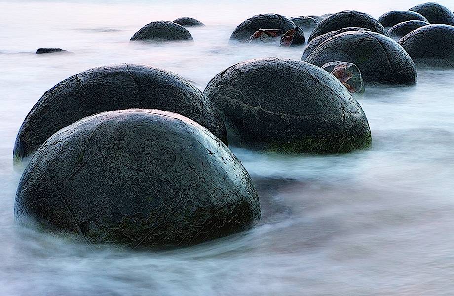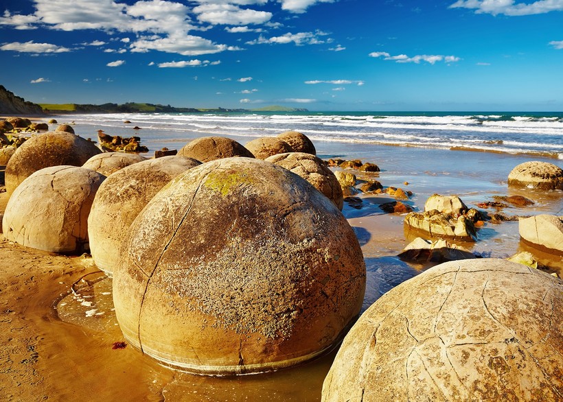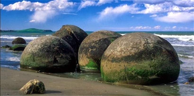 Новая Зеландия также знаменита своими каменными шарами, которые здесь называют валунами Моераки. Эти шары, лежащие на песчаном пляже Коекохе (Южный остров), выглядят особенно живописно. Всего в прибрежной полосе протяженностью около 300 метров расположено несколько сотен каменных шаров, диаметром от полуметра до двух. Есть такие же камни, которые также признаны конкрециями, и на других островах Новой Зеландии, но в меньших количествах.