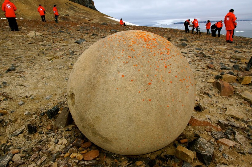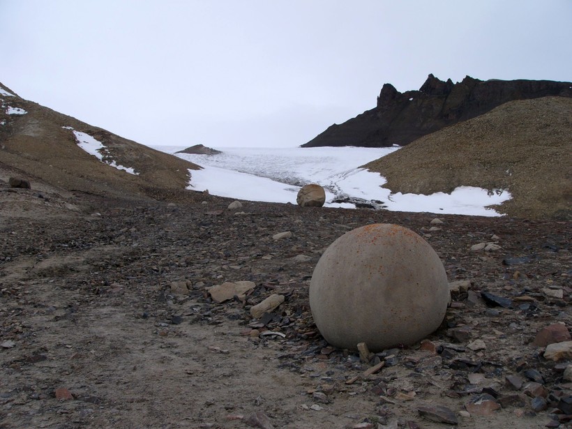 Архипелаг Земля Франца-Иосифа расположен в Северном Ледовитом океане и является самым северным владением России. В центральной части архипелага находится небольшой остров Чамп, где на площади 374 кв.км. разбросаны крупные каменные шары идеальной формы. Особенно много их на побережье этого необитаемого острова, а размеры самых крупных из них просто поражают воображение.