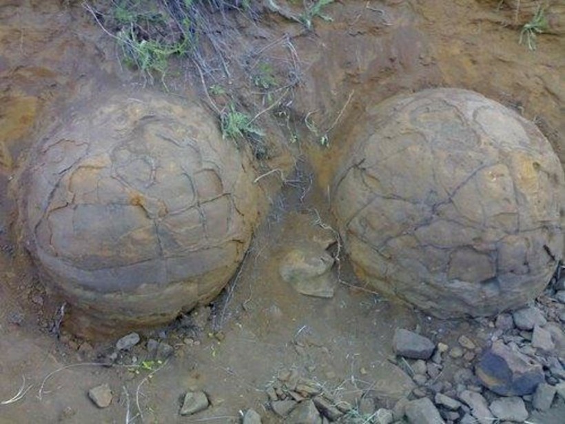 Еще одно место на территории России, где можно увидеть каменные шары — Волгоградская область. Здесь в районе села Мокрая Ольховка (Котовский район), в толще осадочных пород после ливневых дождей были обнаружены каменные шары. Их поверхность неровная, испещрена сколами и трещинами. Отличительной особенностью каменных шаров Волгоградской области является то, что они полые внутри и расположены в определенном порядке. Некоторые сферы, от которых откололись верхние слои, имеют внутри центральную полую часть. Большинство специалистов сходится во мнении, что это разновидность конкреций, у которых возникли полости при усыхании вещества центральной части. Наряду с этой версией звучат мнения о внеземном происхождении, так как в их расположении прослеживается некоторая закономерность: они находятся на одной линии на одинаковом расстоянии друг от друга. Высказываются версии о том, что это могли быть яйца неизвестных науке крупных динозавров. Но такие гипотезы пока не нашли подтверждения.
