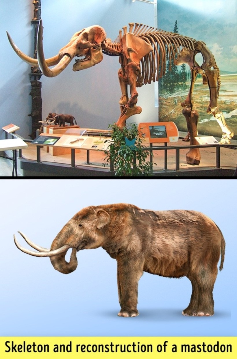 Мастодонты жили до мамонтов, однако внешне очень на них похожи. Это покрытые шерстью гиганты с огромными бивнями.