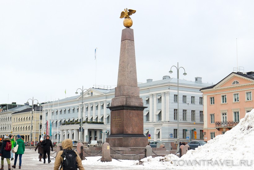Александра Федоровна взяла под свое покровительство столицу герцогства Финляндского, а первый приезд императрицы на территорию Финляндии состоялся в 1833 году. Спустя два года, в 1835 году, на набережной, в том месте, где она сошла на берег, была установлена памятная стела из гранита, вершину которой украшает двуглавый орел на позолоченном шаре. После обретения Финляндией независимости орла демонтировали, но в память о любимой русской императрице в 1972 году памятник восстановили в его первозданном виде.