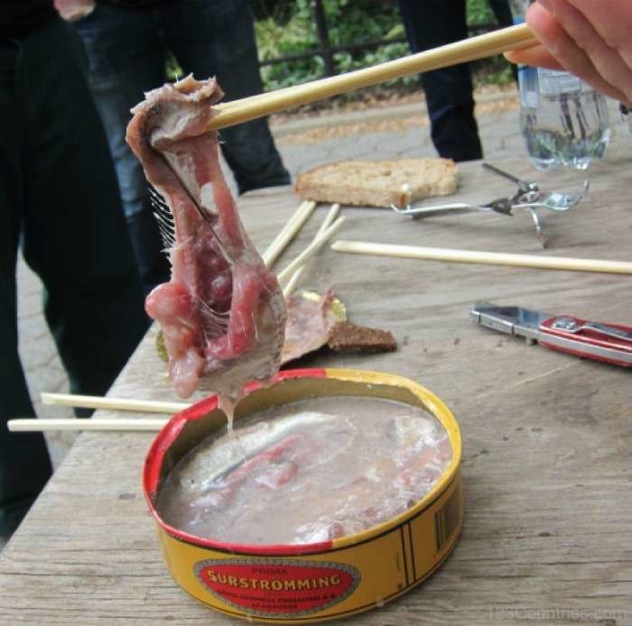 Швеция: сюрстрёмминг — консервированная квашеная селедка, источающая неимоверно ужасный запах.