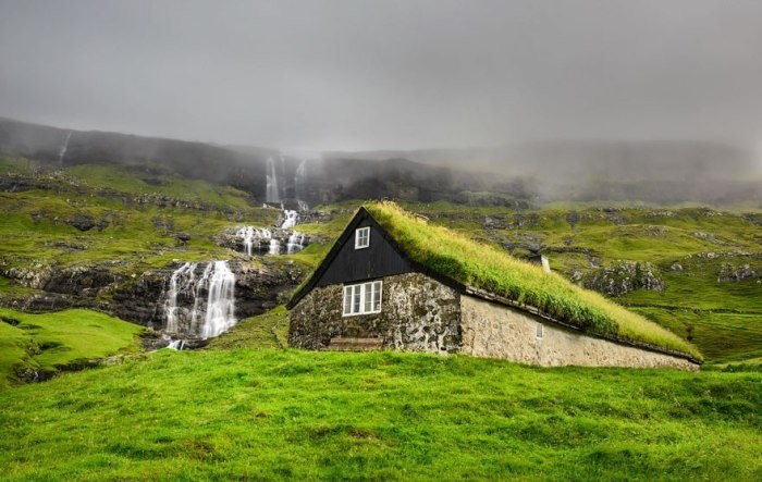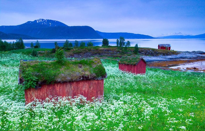 В скандинавских странах очень суровый климат, дует сильный ветер, и нередко случаются штормы, поэтому жилье должно быть максимально теплым. Сейчас никто и не вспомнит, откуда пошла традиция зеленых крыш, но, как оказалось, это отличный способ обезопасить свои дома от всех превратностей погоды. Дерн на крыше прекрасно защищает от холода, а также является отличным теплоизоляционным материалом. В летнюю жару такие крыши защищают жилища от перегрева, а в дождь поглощают воду, поддерживают микроклимат и естественную вентиляцию. Единственный минус такой кровли — тяжелый вес. Сухой дерн весит около 50 кг, а после дождя его масса может увеличиться до 90 кг. Только представьте, насколько эти крохотные домики мощные, если могут выдержать подобный вес!