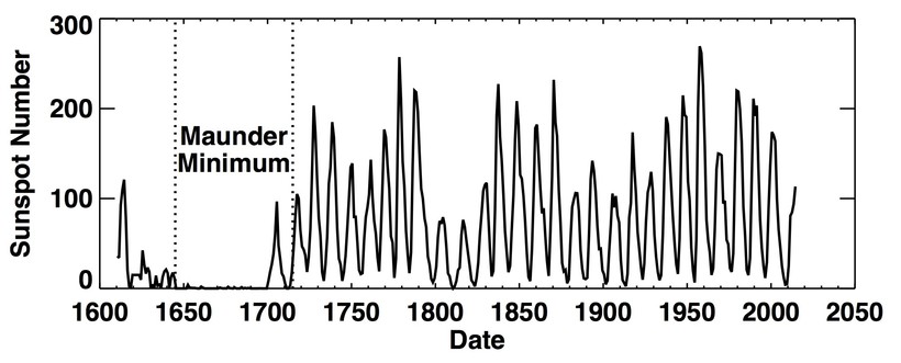 Самый знаменитый период похолодания последнего тысячелетия носит название минимум Маундера. Он пришелся на 1650-1715 годы и сопровождался заметным понижением температуры. В течение этих 6 солнечных циклов количество пятен на Солнце не превышало 50. В связи с этим минимум Маундера стал самым холодным периодом за всю историю малого ледникового периода, который длился на планете с XIV по XIX век. В исторических записях можно встретить множество подтверждений того, что малый ледниковый период сопровождался существенным похолоданием: в Париже до конца апреля лежали сугробы, пролив Босфор покрывался льдами, а поздняя весна и раннее наступление осени приводили к неурожаям и голоду.