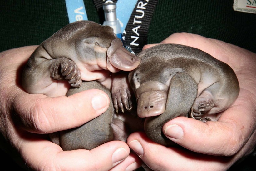 После спаривания самка утконоса, как все птицы и большинство рептилий, откладывает 2-3 яйца со светлой скорлупой. Так же как и другие яйцекладущие животные, самка высиживает яйца. Спустя 10 дней на свет появляются крошечные (длиной около 2,5 сантиметров) утконосики. Интересно, что выводковой сумки, как у кенгуру или коал, у самки утконоса нет. Детеныши просто лежат на животе и слизывают молоко, пока не достигнут возраста 16-17 недель. После этого они становятся вполне взрослыми и в сопровождении мамы покидают нору для изучения внешнего мира. Утконосы достигают размеров 40-50 сантиметров (вместе с хвостом) и весят около 2 килограммов.