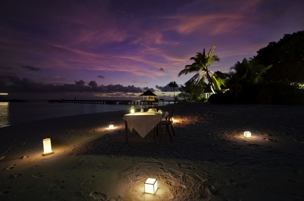 На самом уединенном пляже острова Kandolhu для влюбленных пар организуют роскошный ужин с видом на закат. Шеф-повар заранее согласует с вами меню, и можете быть уверены, что это будет незабываемый гастрономический опыт. Все продумано до мелочей, официанты появляются ровно в нужный момент и бесшумно исчезают. И даже небо в этот вечер показывает вам свои лучшие краски. И это не единственный сюрприз, который приготовила команда отеля ко дню влюбленных. Создано специально 3 вида меню, которые сервируются в любом укромном месте — это второй этаж библиотеки, с видом на океан, на частном причале или в укромном уголке пляжа. Все продумано, чтобы спрятать вас от посторонних глаз. Совершите романтический побег на Kandolu!