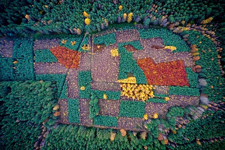 Кацпер Ковальски — известный польский фотограф, который работает с воздуха. Он документирует сложные отношения между природой и людьми. Снимки ландшафта Польши, сделанные с воздуха и наполненные фантастическими красками, показывают взаимодействие природы и цивилизации в абстрактных цветах и формах. Его работы словно говорят, что нет однозначного ответа на вопрос о том, является ли воздействие человека на природный мир хорошим или плохим: свалки и отходы у него так же красивы, как и заснеженные сады и осенний лес.