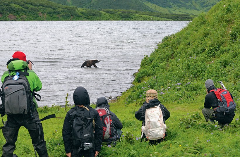 Если вы заметили медведя вдалеке, то стоит как можно быстрее сменить маршрут и обойти хищника. Необходимо подозвать собаку, если вы отправились в поход с четвероногим другом, чтобы она своими действиями не спровоцировала хищника. Не следует тратить время на фотографирование и дожидаться, пока все члены туристической группы посмотрят на медведя, как это часто бывает в подобных случаях. Всегда следует помнить, что медведь — это дикое хищное животное, поэтому его поведение непредсказуемо.