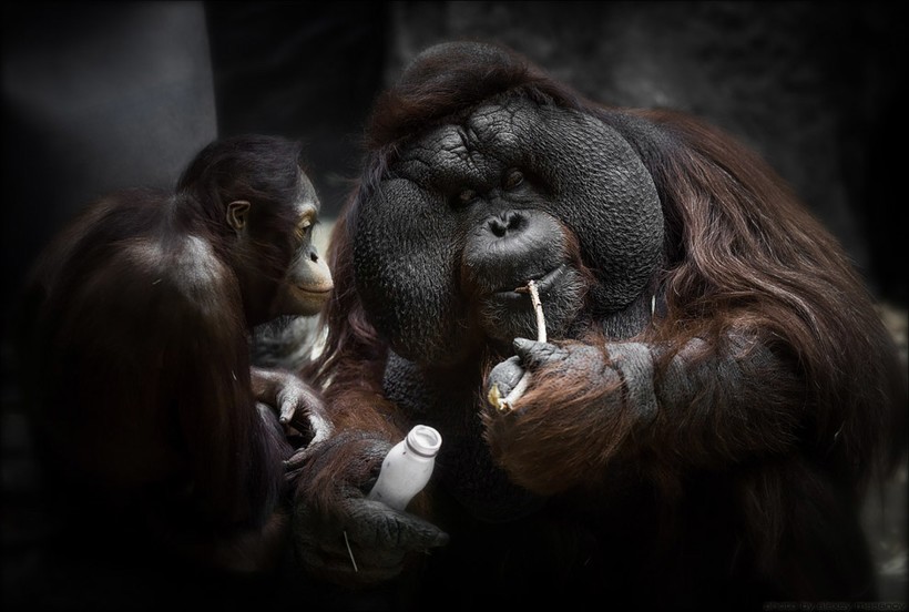 Очень добрый снимок, удачно запечатлевший двух обезьян и их эмоции
