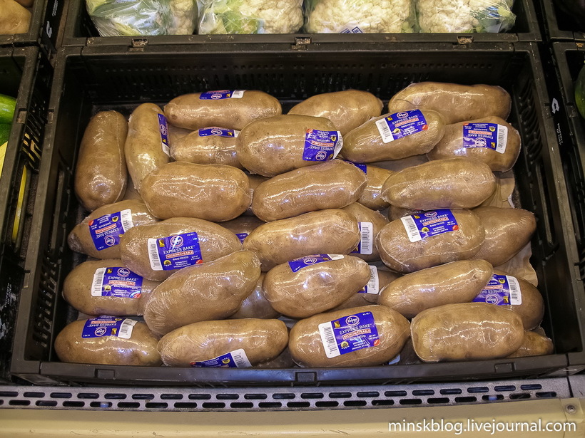 Подобная особенность немало удивит жителей нашей страны — ведь мы привыкли покупать картофель ведрами, мешками или, на худой конец, килограммами. А вот в американских магазинах картошка продается поштучно, и каждая обернута в полиэтилен.