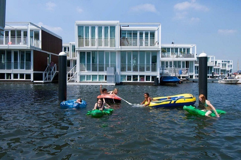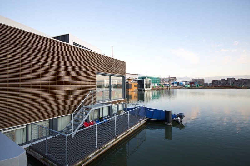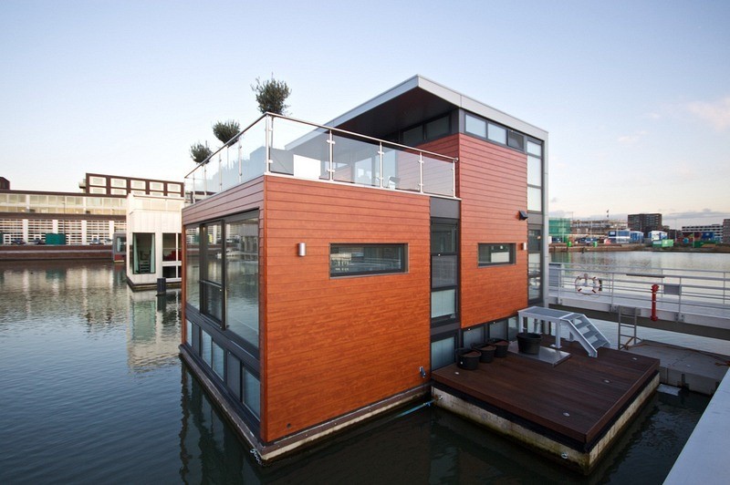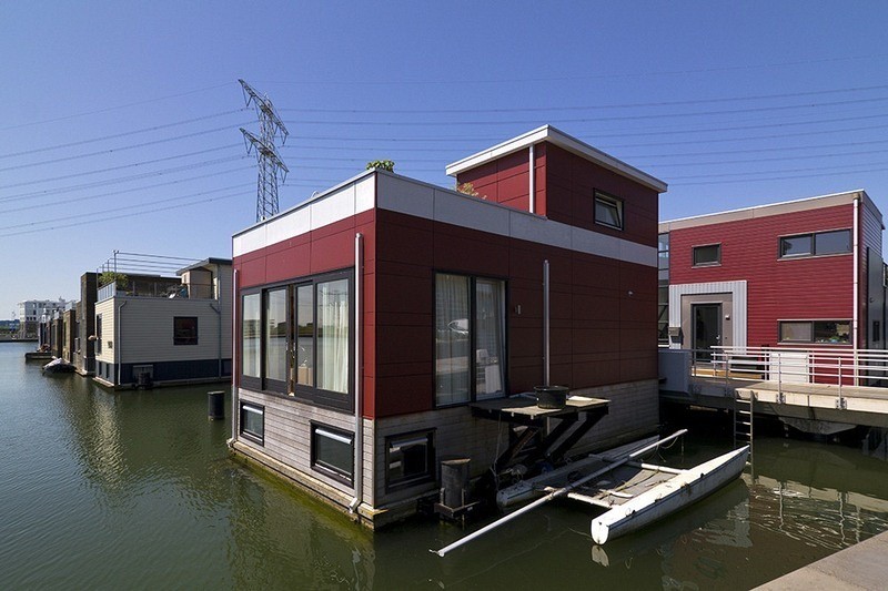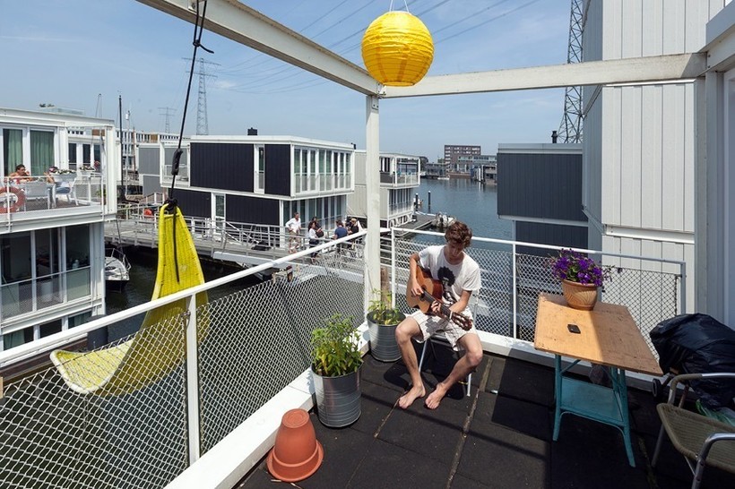 На первом этаже плавучего дома находятся кухня и столовая, а на верхних этажах — комнаты. У каждого здания есть своя терраса: кто-то из жителей превращает ее в настоящий сад, другие ставят здесь столик и стулья и наслаждаются утренним кофе.