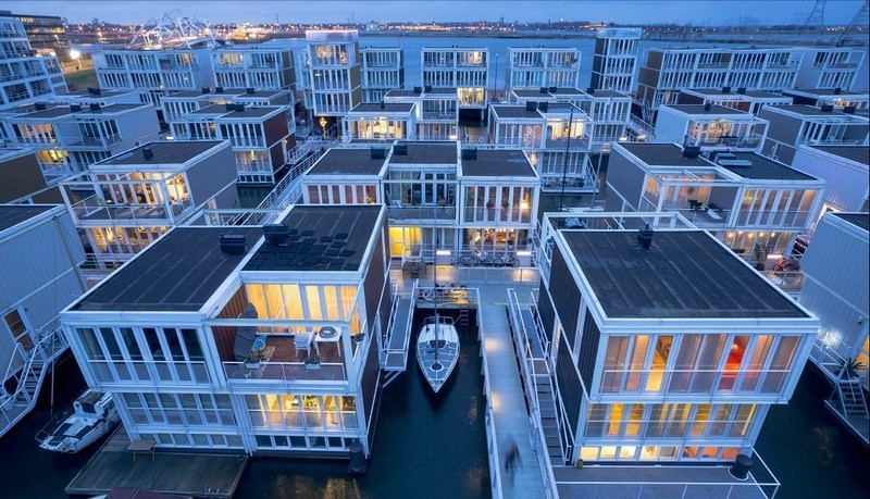 Но особенность района в том, что здесь есть настоящие дома на воде. В микрорайоне Ватербуурт (Waterbuurt) стоит более семидесяти плавучих домов с причалами, возле которых пришвартованы лодки, небольшие яхты и катера. Здания возвышаются на площадках из бетона, погруженных в воду, а сами имеют стальной каркас, стены же — из легкой древесины.